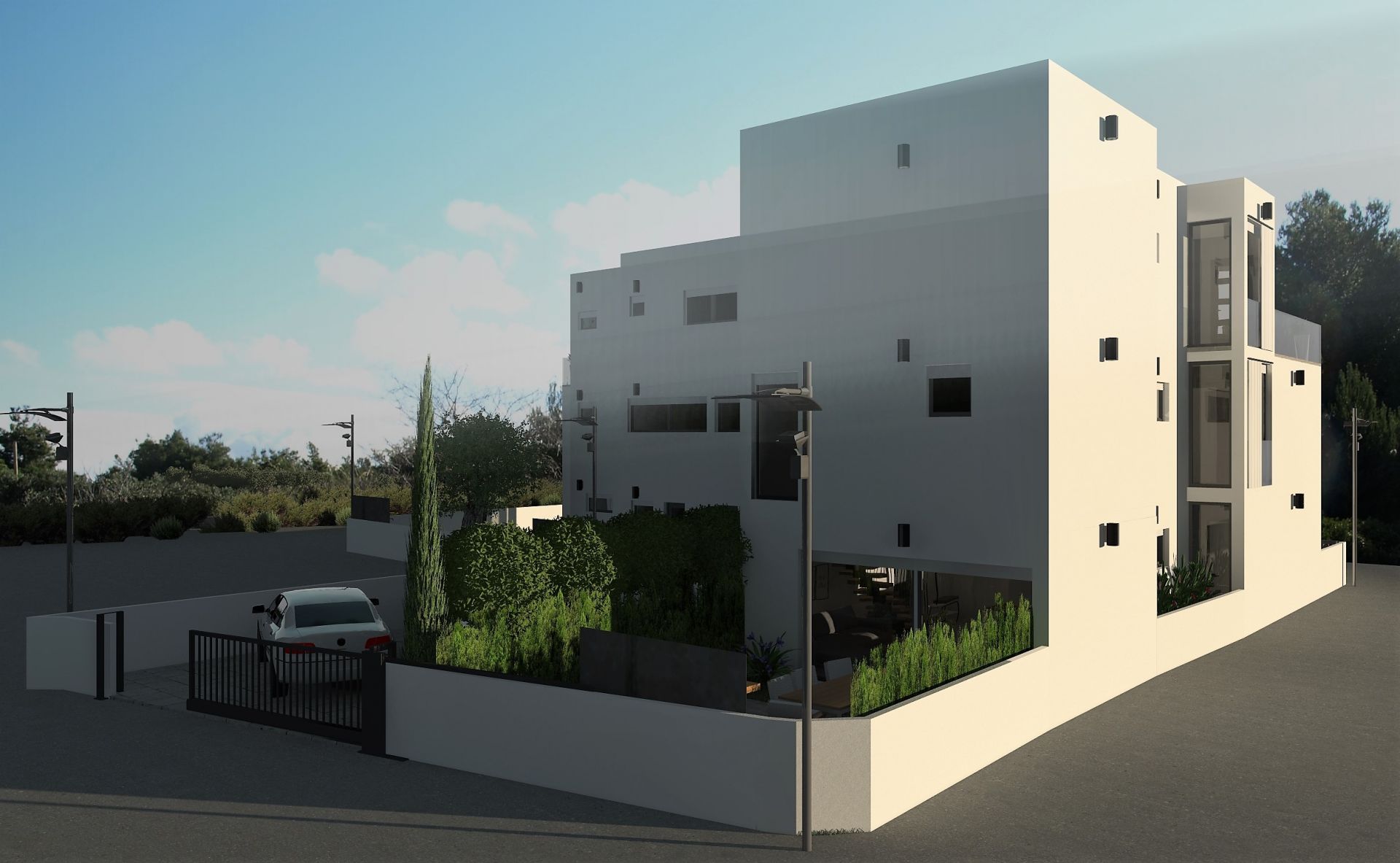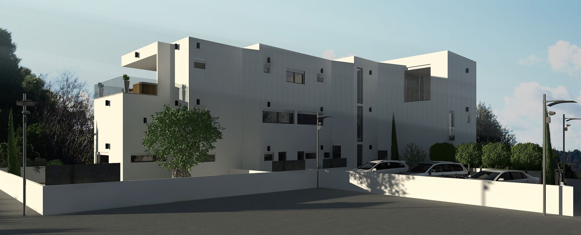 However, not only location and short distances are benefits of new apartment house. The apartment house will feature contemporary and elegant design with 8 unique apartments. White exterior colour with anthracite floor to ceiling windows, French style balconies and sliding window shade panels will contribute to calm and harmonious design.