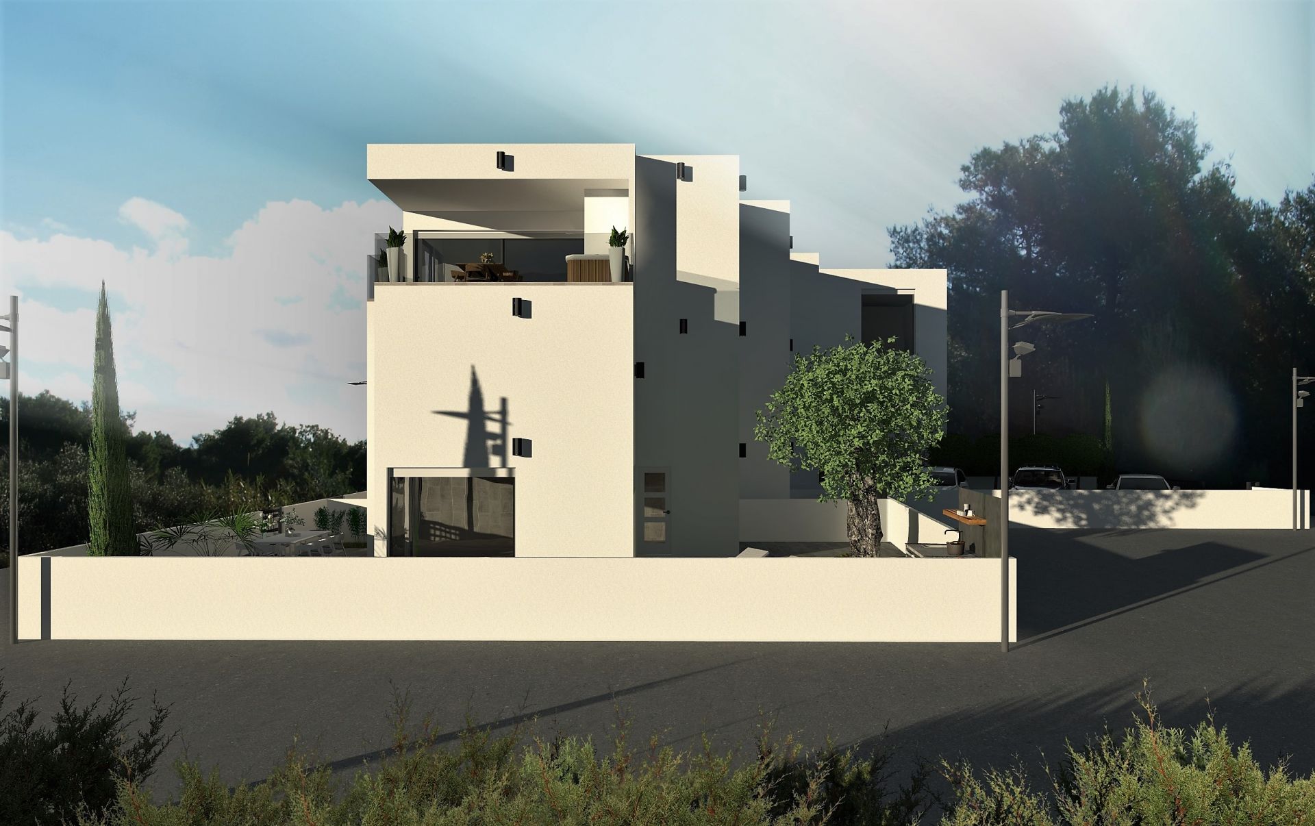 On the 2nd floor 2 penthouse apartments will offer unobstructed views to the south facing beach and Šibenik archipelago through floor to ceiling windows. Each apartment will have generous terrace with optional SPA Hot tube. Both penthouse apartments will have private staircase access and option of common private elevator. Penthouse apartments will consist of two bedrooms and two bathrooms with generous living room, kitchen and eating corner in open space design manner. Several options of materials and colours will be available to choose from.
