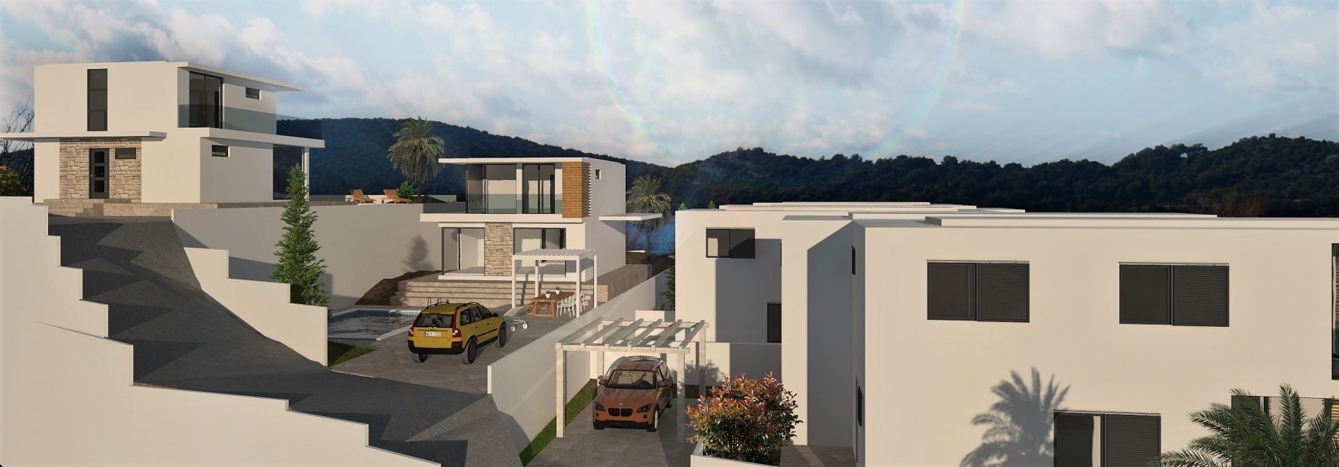 Primošten is one of the most authentic small towns on the Adriatic Coast and is a gem among those who seek peaceful yet glamorous location. The “Primošten Hill Houses” will be constructed in a quiet neighbourhood only 300 meters away from Primoštens’ local villagers port and only 900 meters away from famous Primošten Old Town on peninsula. Nearest beach is only 600 meters away. Since everything is in walking distance you will really be able to enjoy peaceful yet glamorous vacation.